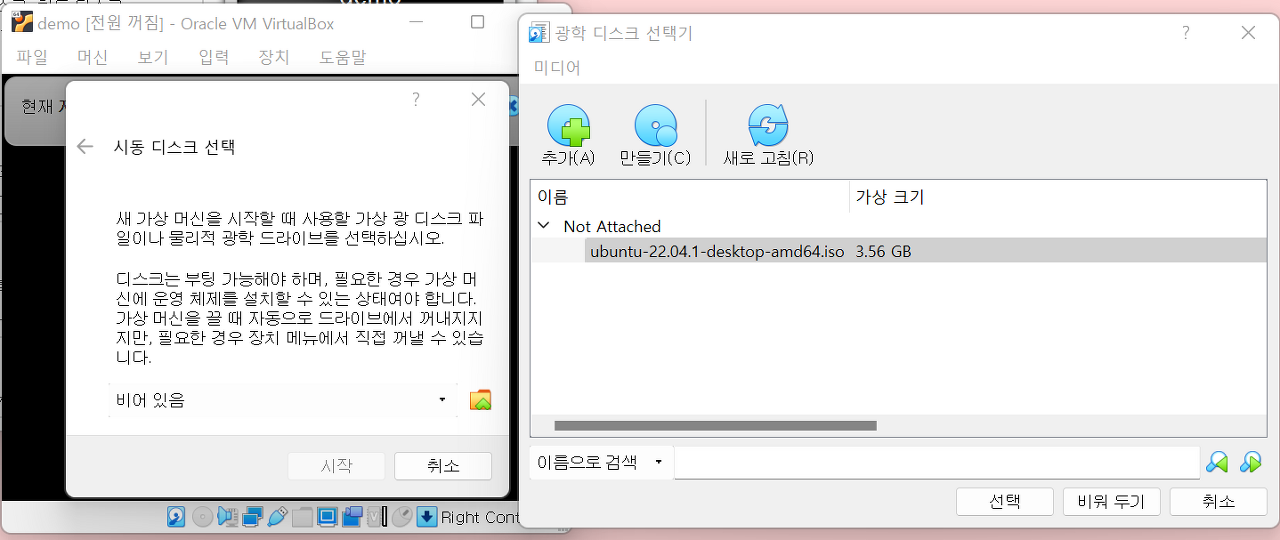 2) 파일 모양 클릭해서 다운 받은 우분투 iso 파일 찾기