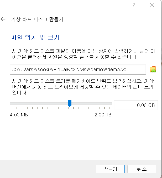 메모리 크기는 강의에서 노트북 상황에 맞게 조절하라고 했지만 그냥 강사님 따라서 위 사진 처럼 최대로 했는데, 괜히 그랬다가 크롬 다운되고 컴퓨터가 멈춰버려서 정신차리고 추천 메모리 크기 2048MB로 다시 생성했습니다. 이 점을 참고하여 생성하시길 바랍니다.