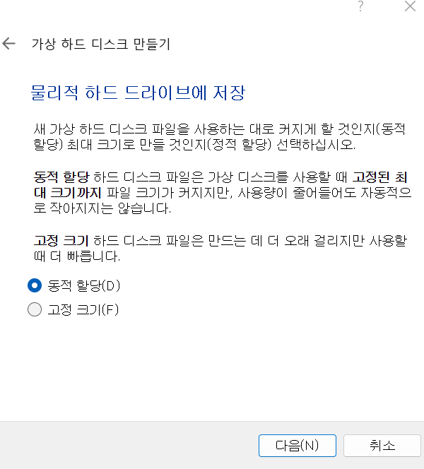 저는 여기 부터는 기본적으로 체크되어있는 대로 넘어갔고, 필요한 가상 머신에 맞게 설정하면 좋을 것 같습니다.